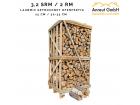 3,2 SRM-Box (Innenmaßen: ca. 2 m3: so kann man leicht die gelieferte Menge selbst nachmessen). Das Scheitholz ist gestapelt / ordentlich aufgeschichtet, ohne Zwischenräume, nicht geschüttet.